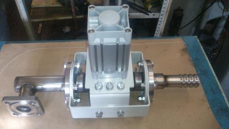 Компания ПромАвтоматика (ПромТехСнаб, ООО) спроектировала и изготовила узел пневмозажима. Пневмозажим применяется как исполнительный элемент в системе дозирования материала.